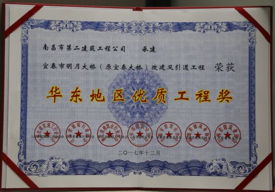 新年伊始,公司項目就迎來了開門紅。公司承建的宜春市明月大橋改建及引道工程榮獲華東地區(qū)優(yōu)質工程獎。