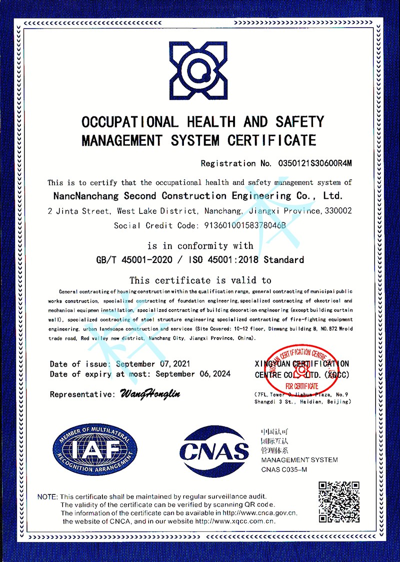 職業(yè)健康安全管理體系認(rèn)證證書(shū)