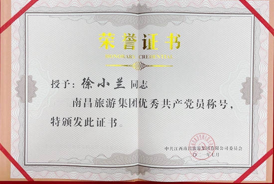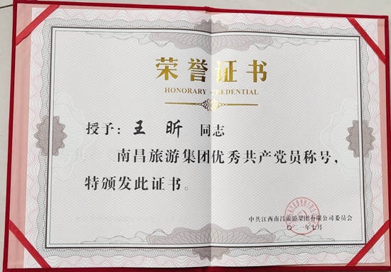 在隆重紀(jì)念中國共產(chǎn)黨成立100周年之際,南昌市國資委和南昌旅游集團于近日對一批來自各條工作戰(zhàn)線上的優(yōu)秀黨員和優(yōu)秀黨務(wù)工作者及先進基層黨組織進行了表彰,獎勵他(她)們在各自的工作崗位上履職盡責(zé)創(chuàng)先進、立足崗位爭優(yōu)秀,在推動企業(yè)高質(zhì)量發(fā)展中充分發(fā)揮戰(zhàn)斗堡壘和先鋒模范作用。其中,公司陳國明同志榮獲市國資委“優(yōu)秀共產(chǎn)黨員”稱號,公司黨委被評為南旅集團“先進基層黨組織”,黨員職工胡穎明、徐小蘭、王昕、王貞同志獲南旅集團“優(yōu)秀共產(chǎn)黨員”稱號。